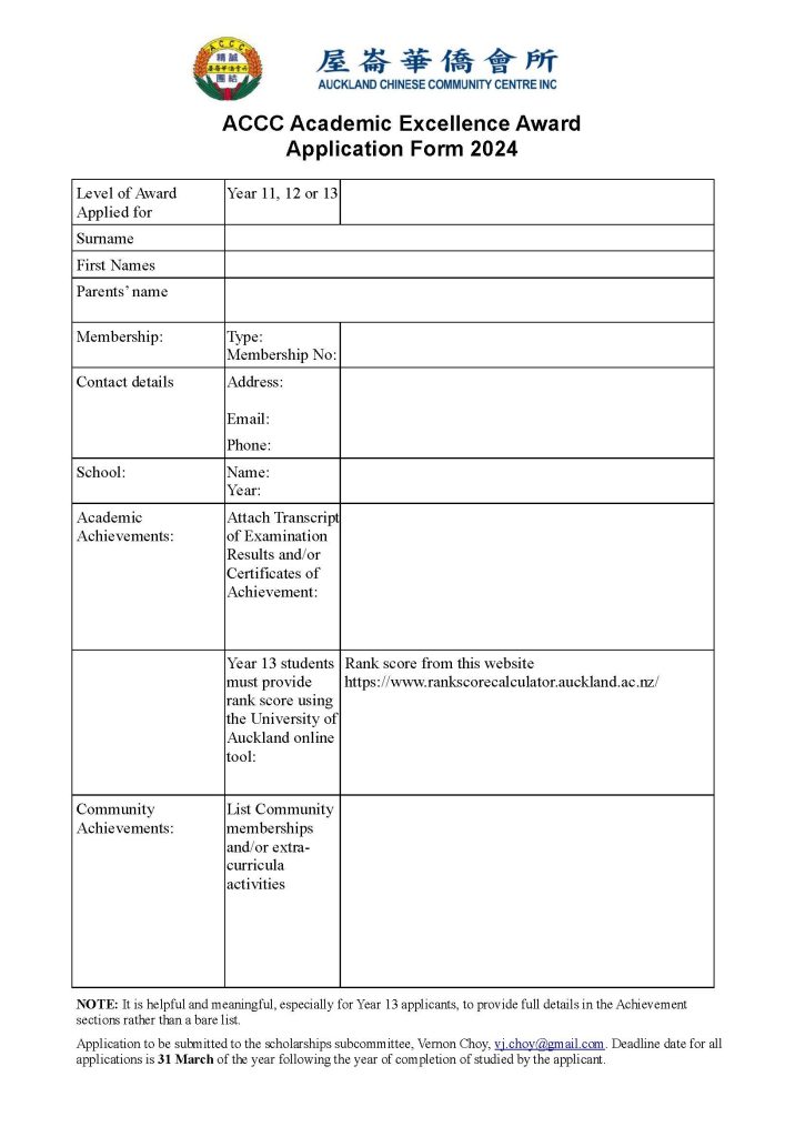Application for these awards shall be made on the ACCC Academic Excellence Award 2025 application form and must be submitted before 31 March 2025.